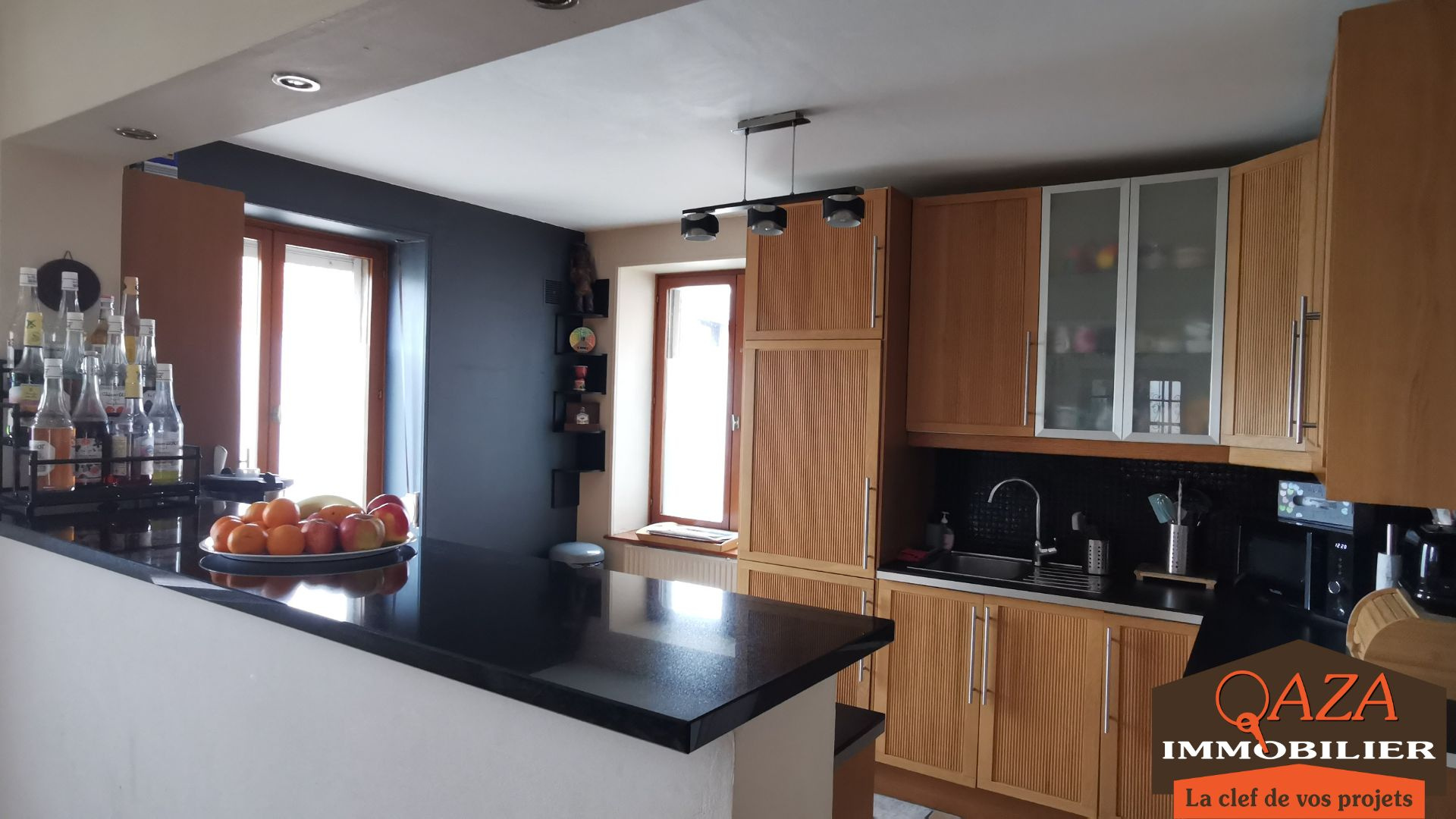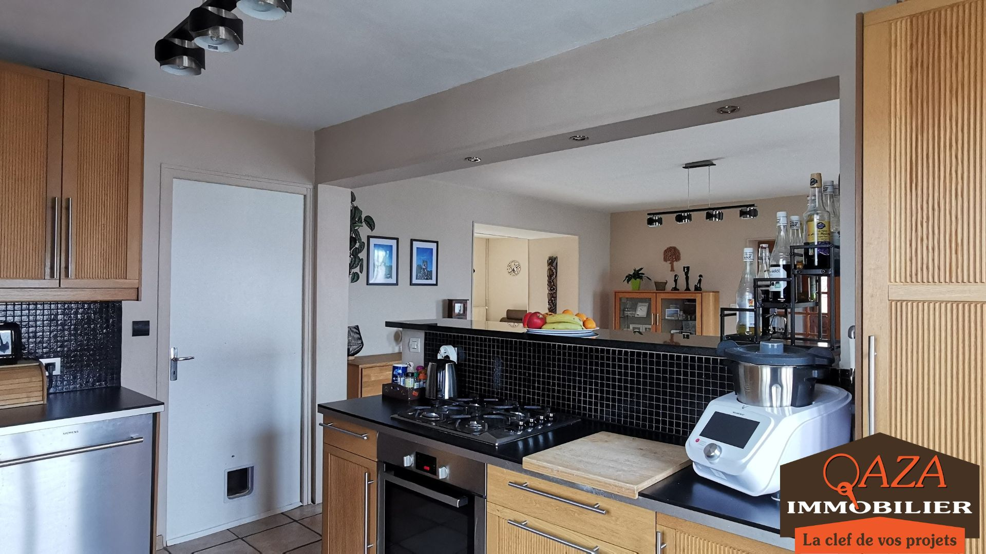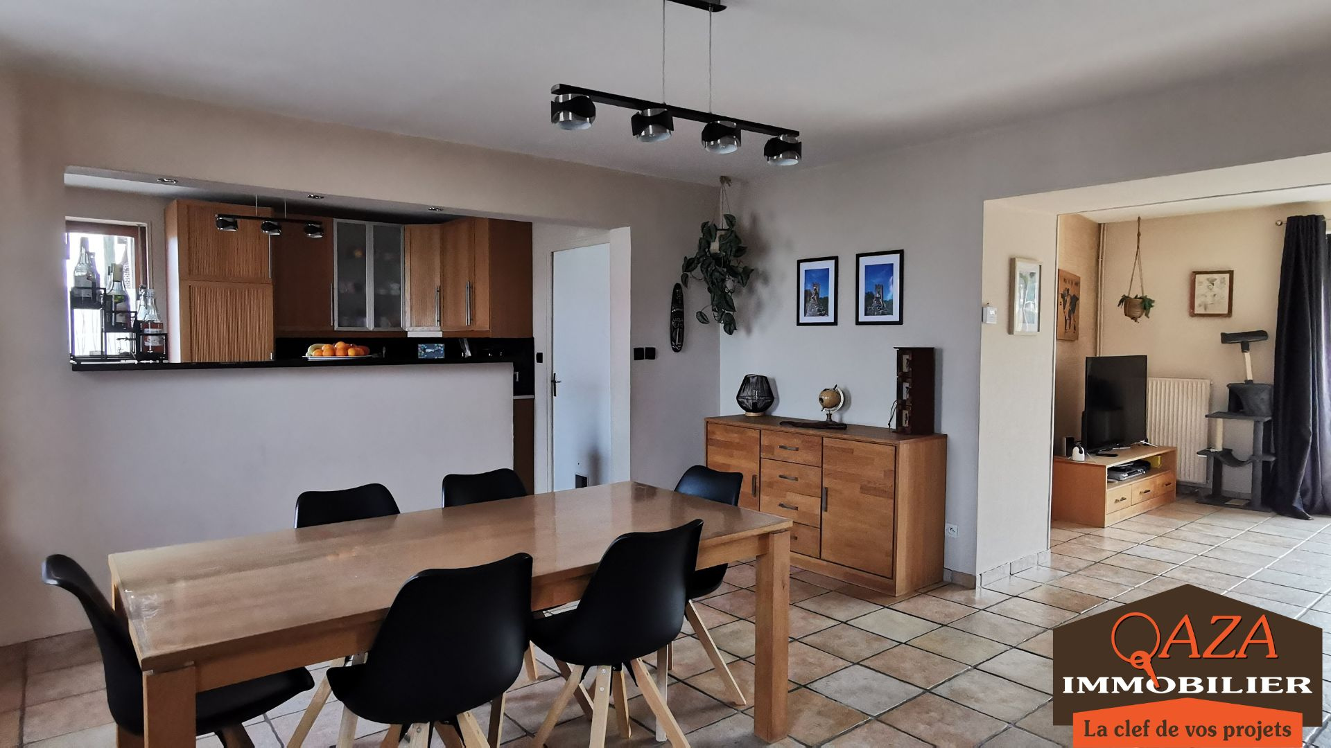Au rez-de-chaussée : un séjour spacieux d'environ 42 m², une cuisine ouverte et équipée, un cellier, une salle d'eau.