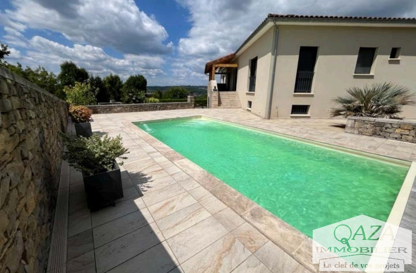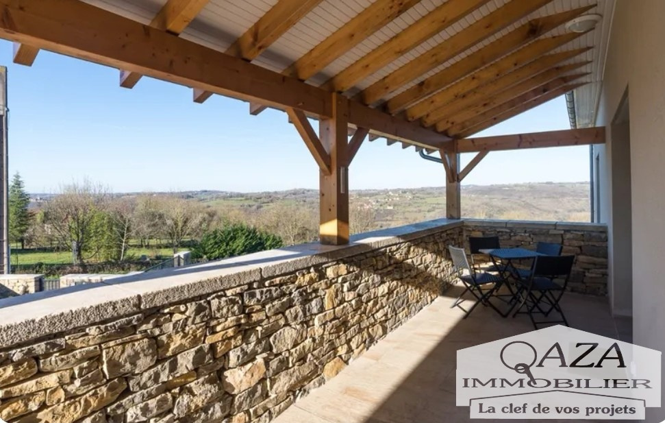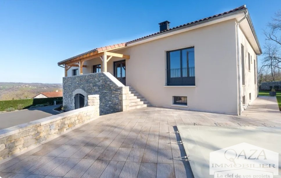 QAZA IMMOBILIER vous propose à une heure de Montauban et de Cahors, au carrefour du Lot, de l'Aveyron et du Cantal, cette magnifique maison d'architecte de 2017 alliant modernité, charme et grand confort. Orientée Sud-Ouest et située dans un environnement calme, érigée sur une parcelle de 1884 m² entièrement close et paysagée avec vue sur le Ségala et les monts du Cantal. Ce bien d'exception aux normes PMR offre une surface habitable de 220 m² et plus de 250 m² en rez-de-jardin, avec :