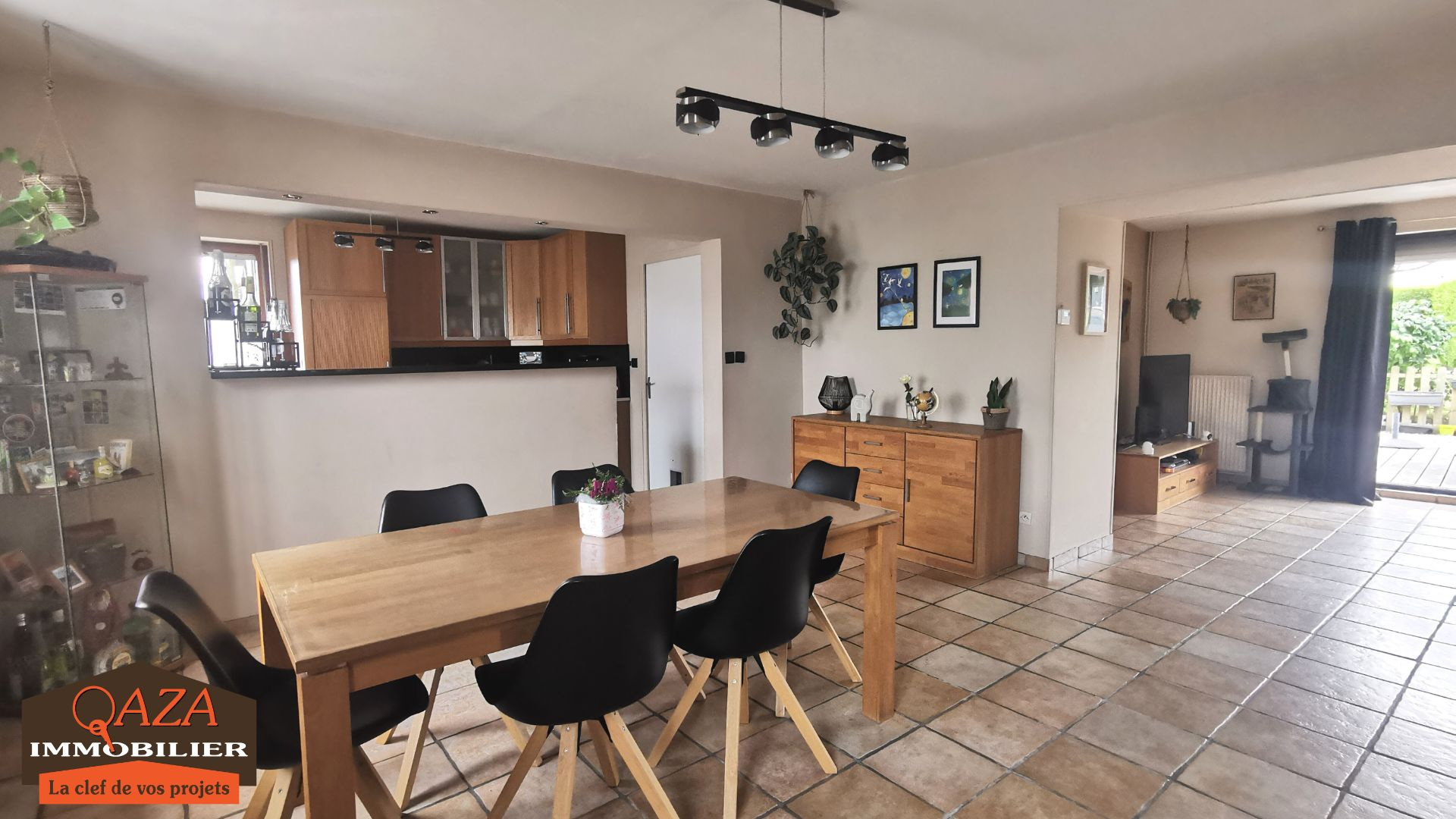 QAZA IMMOBILIER vous propose cette agréable maison lumineuse d'environ 115 m² habitables, érigée sur 390 m² avec :